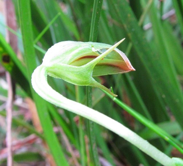 Below: Top left – Greenhood Orchid (Pterosylus nutans), usually found in spring but flowering today, for reasons best known to itself! Top right – pretty little orchid which I have not yet managed to identify. Bottom are two different types of fungi brought to glowing life by the rain.