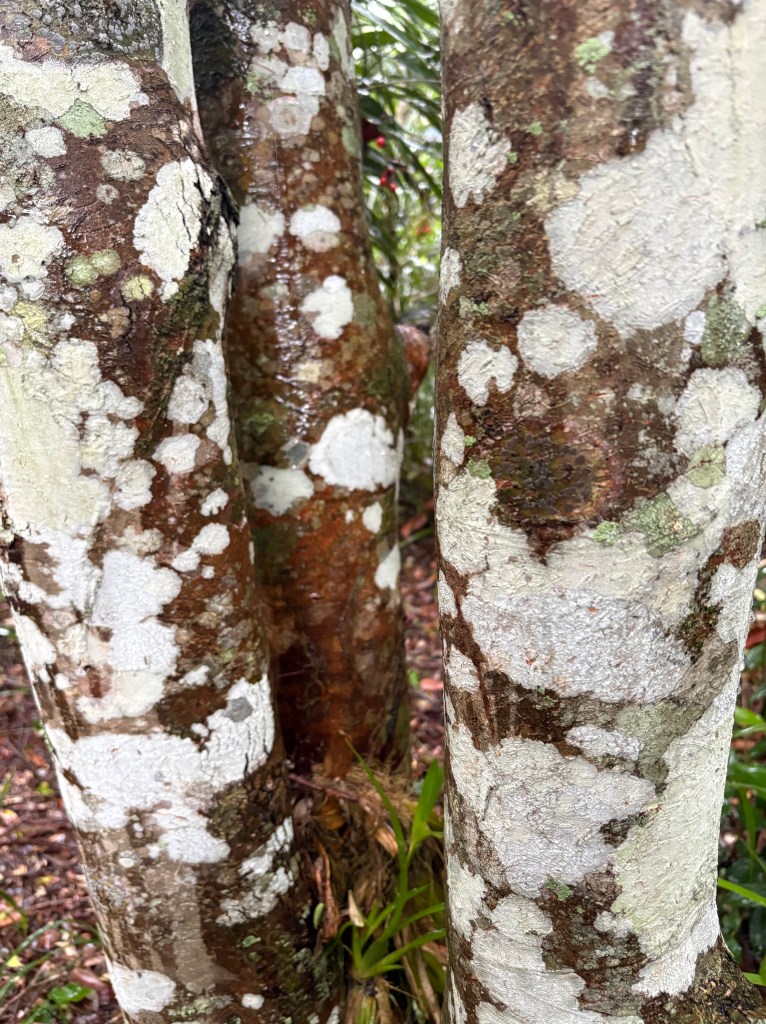 Bark comes to shining life when it rains, the steady trickle downwards nurturing tiny ferns and mosses and orchids that thrive in the low light at the bottom of the tree trunks.