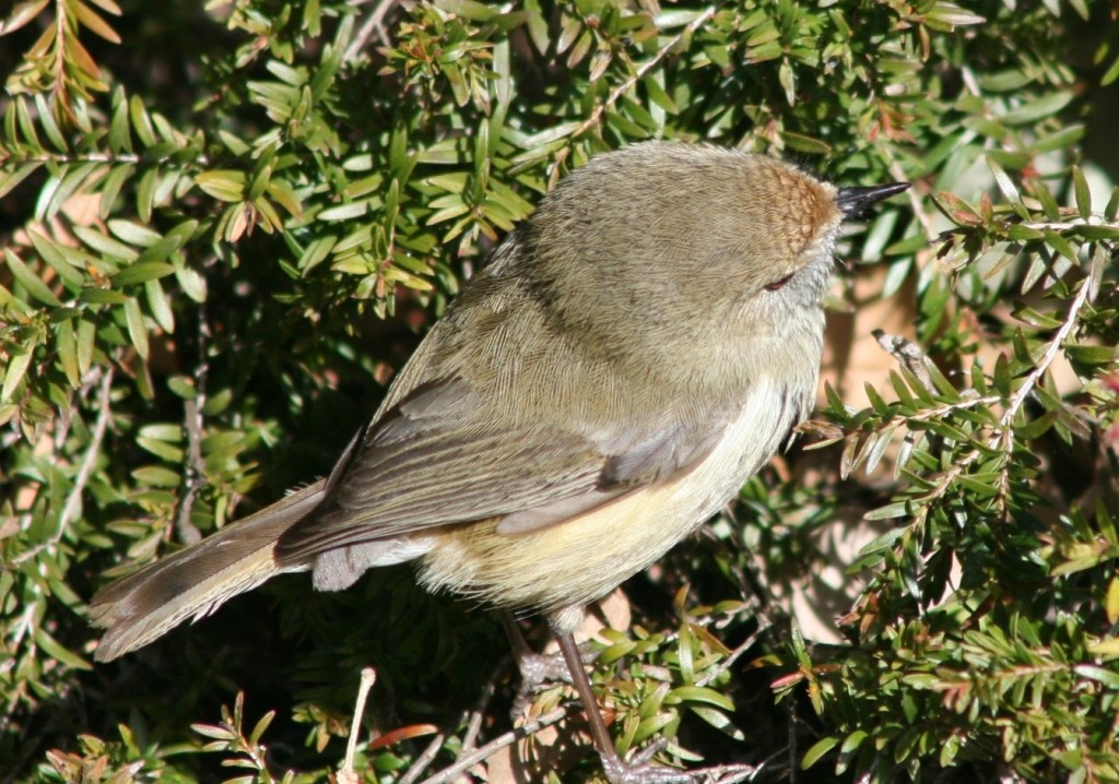 The most common bird this morning and certainly the most active, as usual, was the Lewin’s Honeyeater. Though the birds I saw were not chasing each other around all the time the way they do in spring, they were still both vocal and busy among the branches. A family of Brown Thornbills sang sweetly to each other with plenty of melodic variation but none of the chattering or the characteristic trill of the males that you hear in spring and summer. I like to assume that by now this year’s young have found their voices and enjoy using them and this year’s dads no longer feel they have to assert themselves!