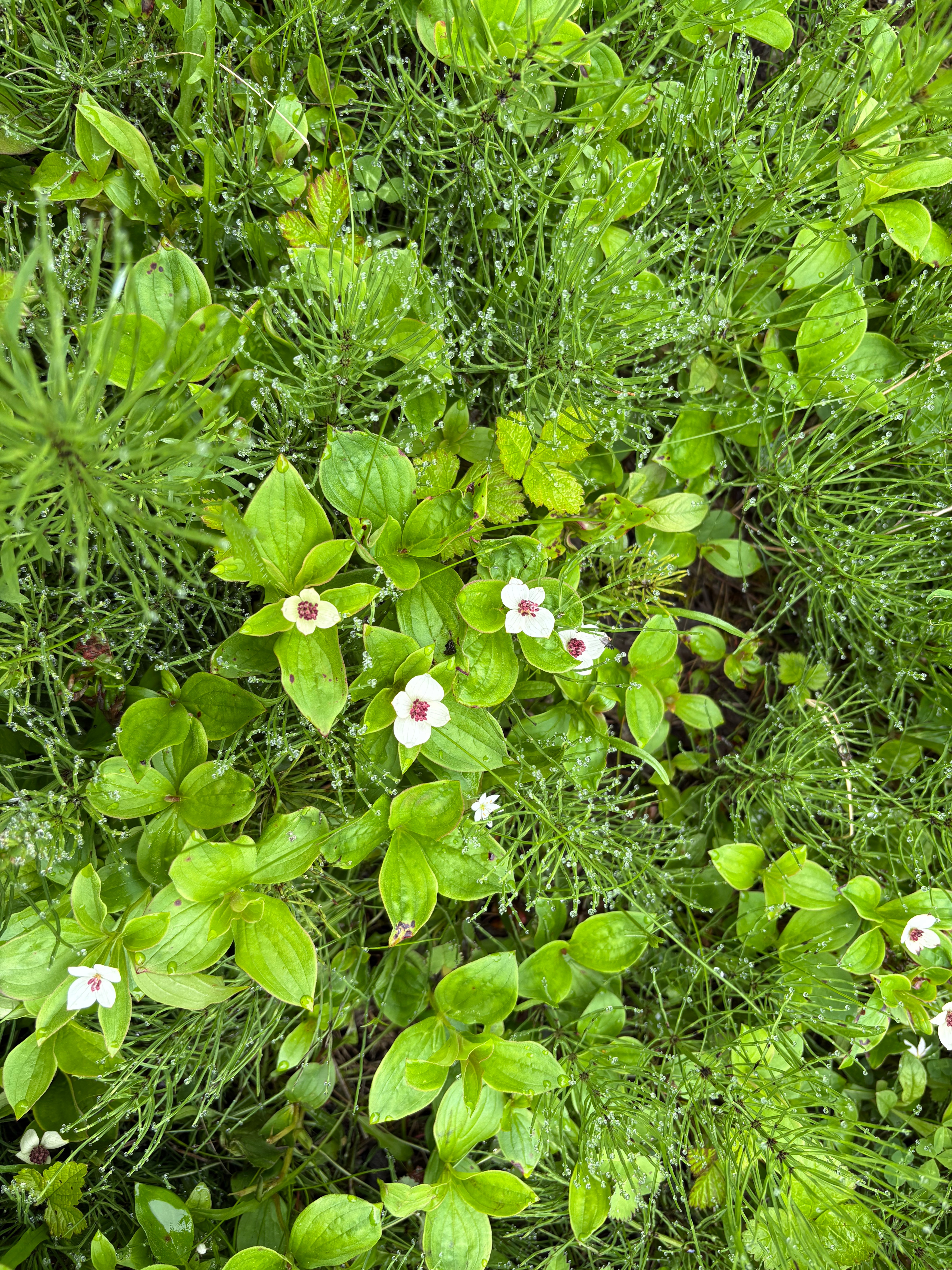 There are medicines here close to the ground, Arnica and Angelica as well as the many berries full of vitamin C. In summer the largest dandelions in the world grow here, matching the buttercups for brilliance, digestive gold for bears.  Apart from these, most of the flowers of this cold, wet forest are delicate and pale.